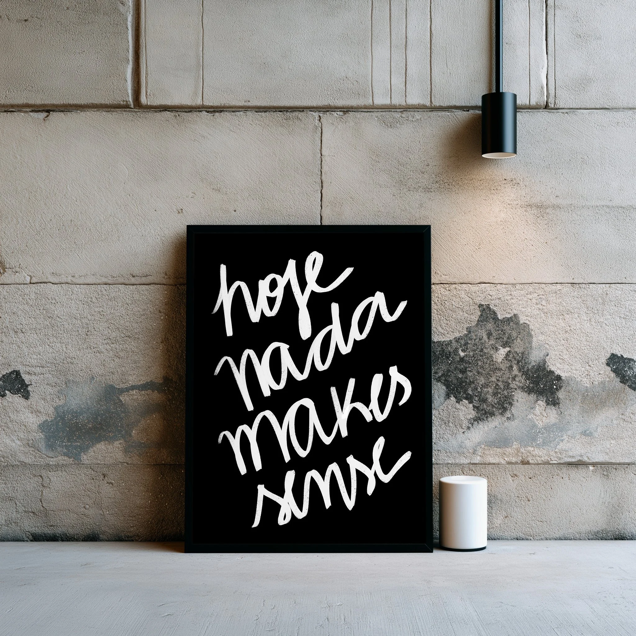 Black and white acrylic painting on white canvas.
