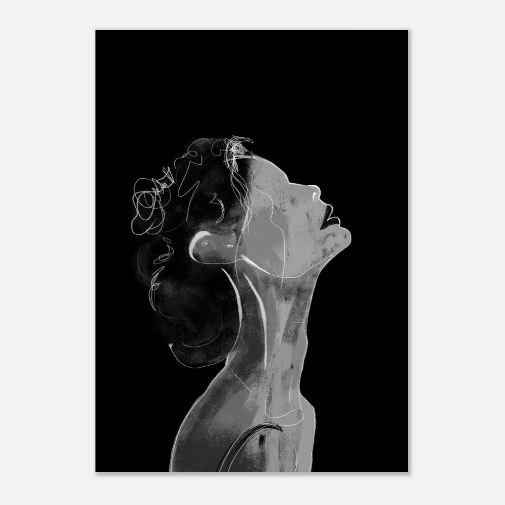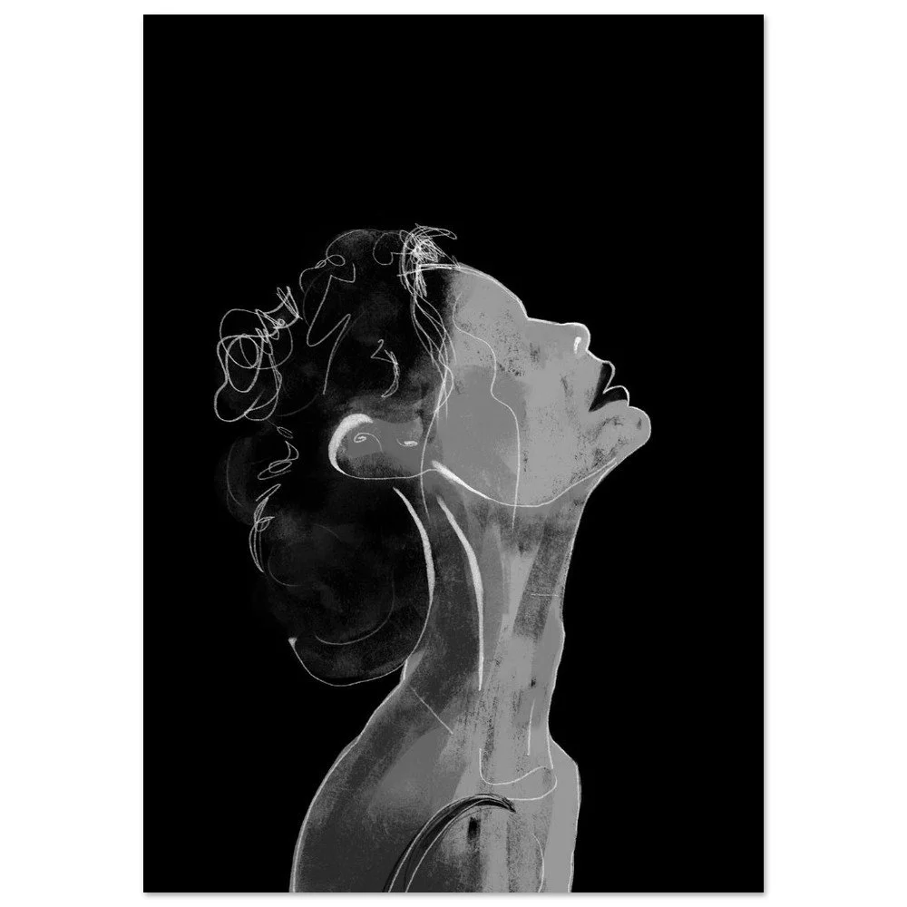 This striking poster features a digital painting of a Black woman, rendered beautifully in black and white tones, capturing both elegance and strength.